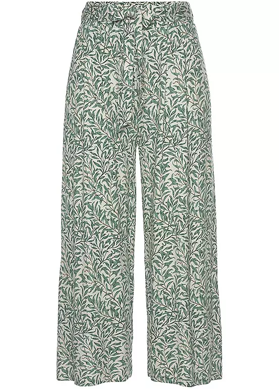 Airy culottes by Beach Time with an all-over pattern. Slightly raised waistband with belt loops and tie strap. Wide-cut trouser legs. Can be combined in many ways. Soft flowing viscose quality. All-over leaf printed. Tie belt at the waistband. 7/8 length. 95% Viscose, 5% Elastane.