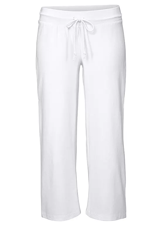 Fashionable cropped trousers made from a soft stretch material mix, and featuring an elasticated drawstring waistband for extra comfort. Ideal for the beach or holidays. Length approx. 80 cm (31½ in). Inside leg approx. 58 cm (23 in)