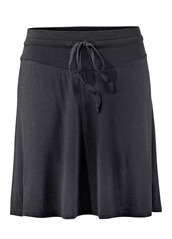 Fashionable and simple knee length skirt with tunnel drawstring and elasticated smocked insert on waistband at the back. Length approx. 46 cm (18 in).