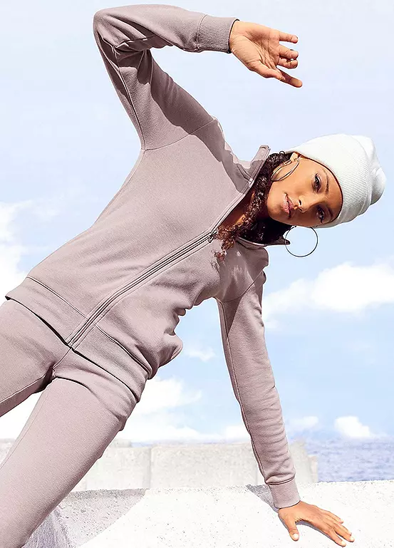 A casual sweat jacket in a soft cotton blend with a logo print and embroidery. Finished with a high collar and practical side pockets. Practical pockets.