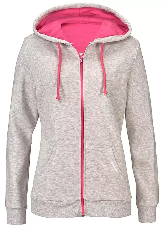 With contrast inner lining and tonal printed logo on sleeve, side pockets and ribbed trim. Made from sweatshirt material, softly textured on the inside.