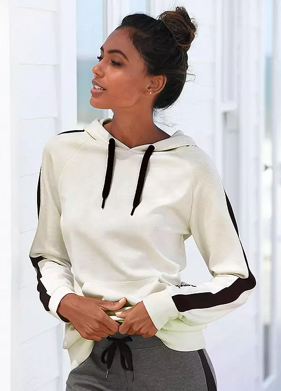Perfect for sports or leisure, this fashionable hoodie features a kangaroo pocket and sporty stripe along the shoulders and sleeves, finished with brand lettering at the side.