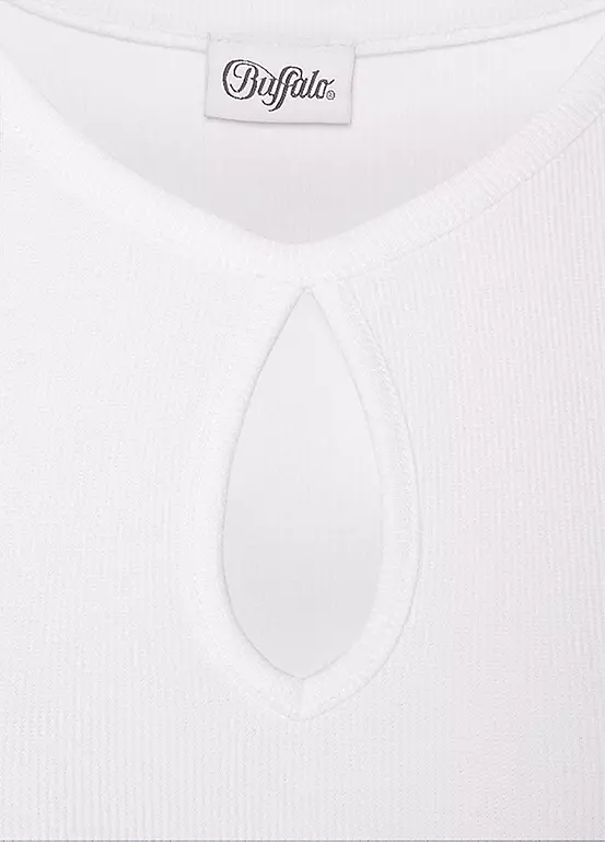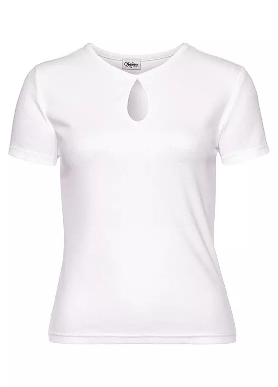 Casual basic short sleeve t-shirt with fashionable small cut-out detail and a straight hem. Made from a cotton rib fabric that feels great against the skin. With small cut-out detail.