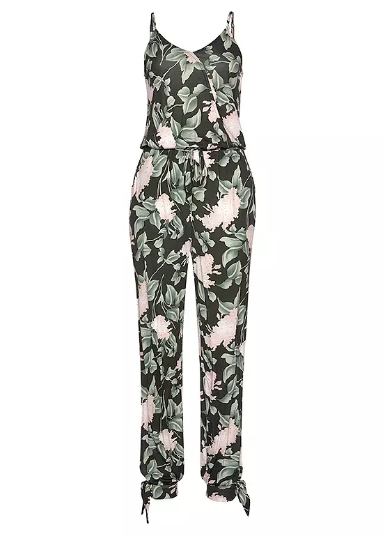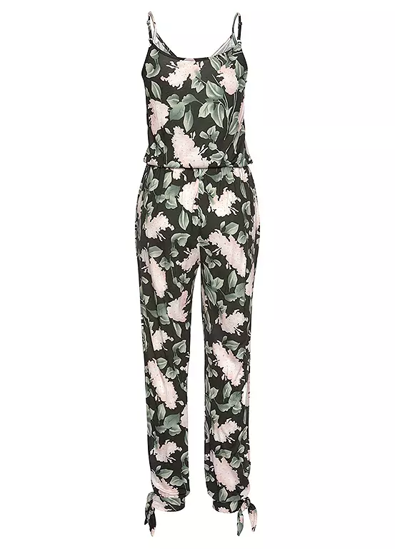 This stylish jumpsuit is in a gorgeous all-over floral print, with a sophisticated leg slit that begins in the middle of the thigh and falls slightly to a tight waistband with a bow on the ankles. A stretch band at the waist ensures a visual separation and good hold. Inside leg approx. 74 cm (29¼ in)