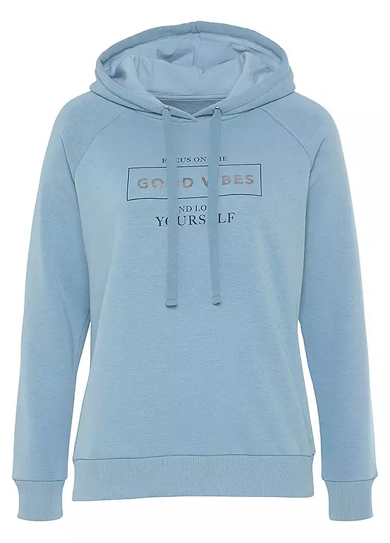 Fashionable hoodie by Buffalo. Featuring a nice foil print on the chest, along with a round neckline, long raglan sleeves and ribbed cuffs on the hems. Made from a soft cotton material mix that feels great against the skin. Hooded sweatshirt with foil print on the chest. Ribbed cuffs at the hems.