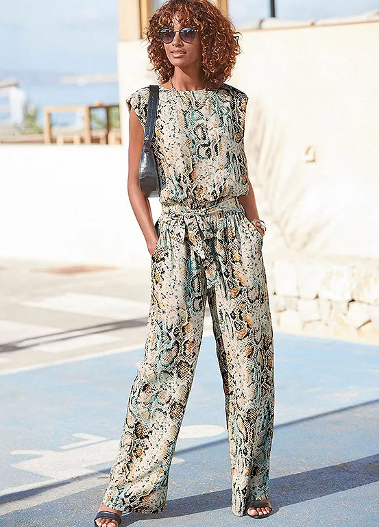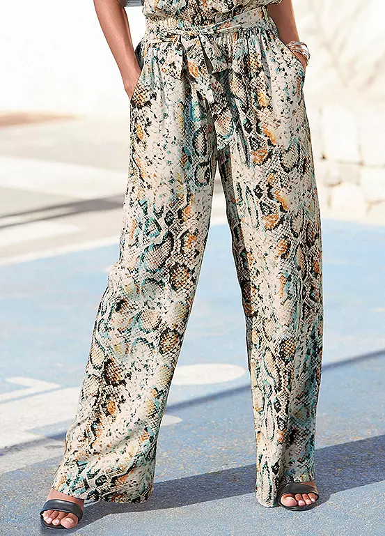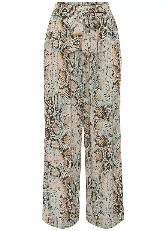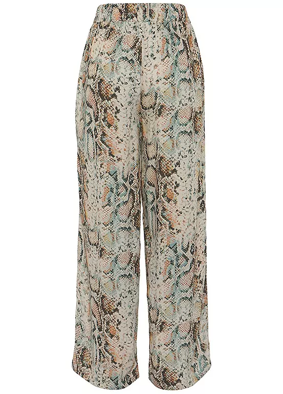 Comfortable, wide-cut slip-on trousers with an all-over snake effect print. Designed with a drawstring waist with tie and handy side pockets. Every pant is unique. Snake print. Side pockets. Machine washable. 100% Viscose.