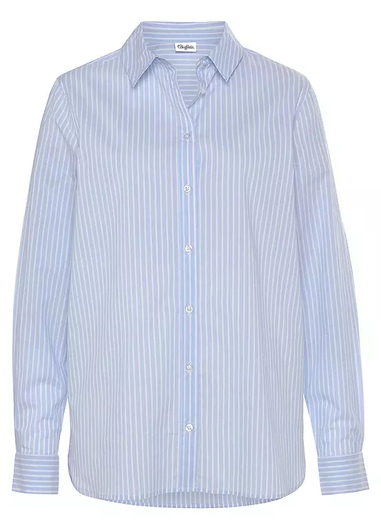 Buffalo’s Stripe Long Sleeve Blouse is a classic wardrobe staple you’ll wear for both office and leisure. The button placket detail adds the perfect amount of style to this timeless piece. Get ready to stock up on this must-have blouse! Long sleeve. Rounded hem.