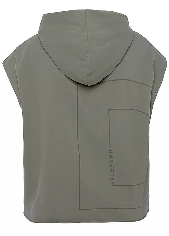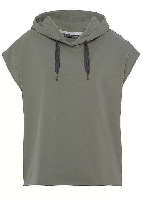 A short sleeve hooded sweatshirt from Elbsand featuring a lined drawstring hood and overcut sleeves. Made from soft sweat fabric, it features a logo print on the back. Lined hood. Short sleeves. Machine washable. Outer: 80% Polyamide, 20% Elastane. Lining & Padding: 100% Polyester.