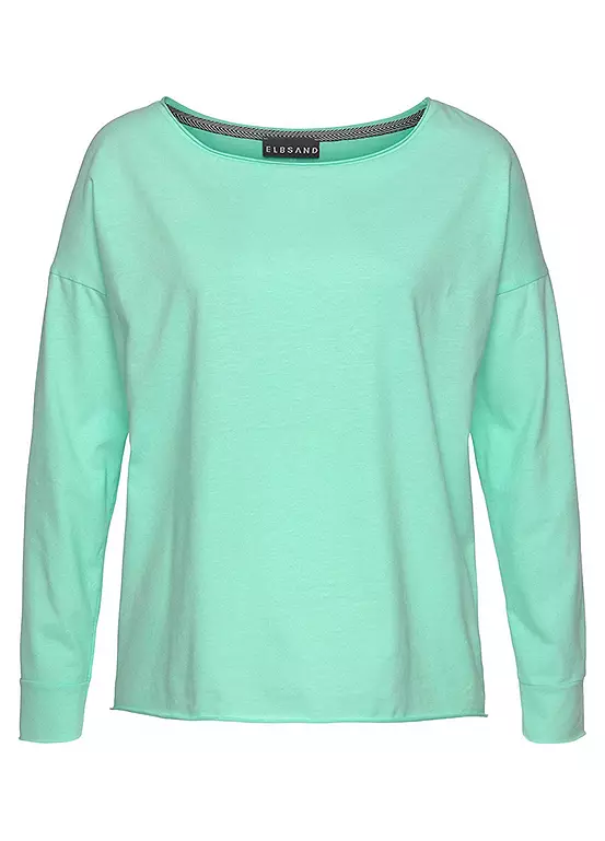 A casual top with a large logo print, a dividing seam on the back, dropped shoulders and long sleeves.