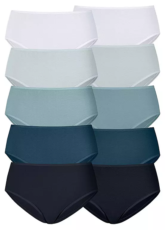 Practical pack of 10 high waist briefs come in a soft stretch cotton quality.