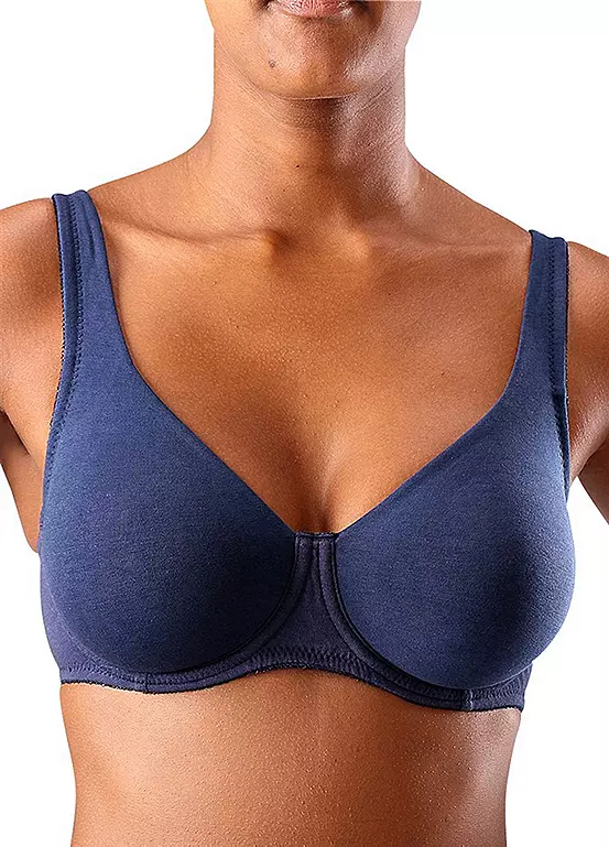 This is a fantastic minimiser bra with underwire, and the best thing about it? You get two. Due to the special cut, your breast size will appear smaller, keeping you in check throughout the day. They feature slightly wider straps and wider elastic bands along the edge for more comfort and adjustable straps and a back closure.