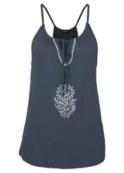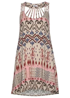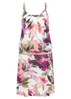 This dress is sure to get you noticed and will attract admiring glances. Featuring an all over expressive flower print, that is in a figure-shape cut and is styled with a wide crew neckline, with a rounded low cut back with ribbon, three-quarter length sleeves with elasticated cuffs and is complemented with a flounce at the hem. Length approx. 92 cm (36 in)