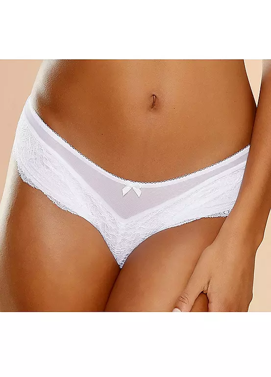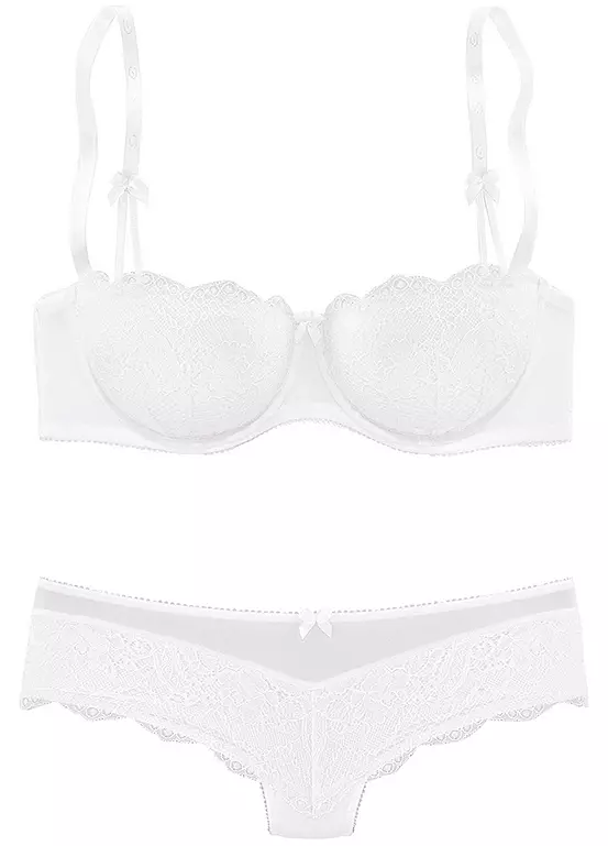 Not only does this set look fabulous, but it’s also great value too! Crafted from an enchanting lace, the bra boasts mesh wings while the shorts boast a mesh panel along the waistband. You’re sure to be impressed!