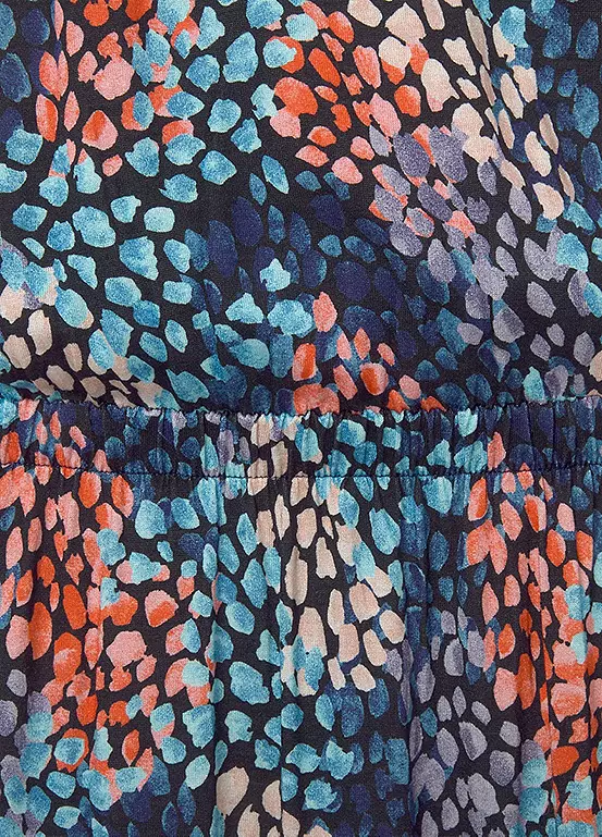 Maxi dress in a sleeveless design with button closure at the neck and a polka dot print.