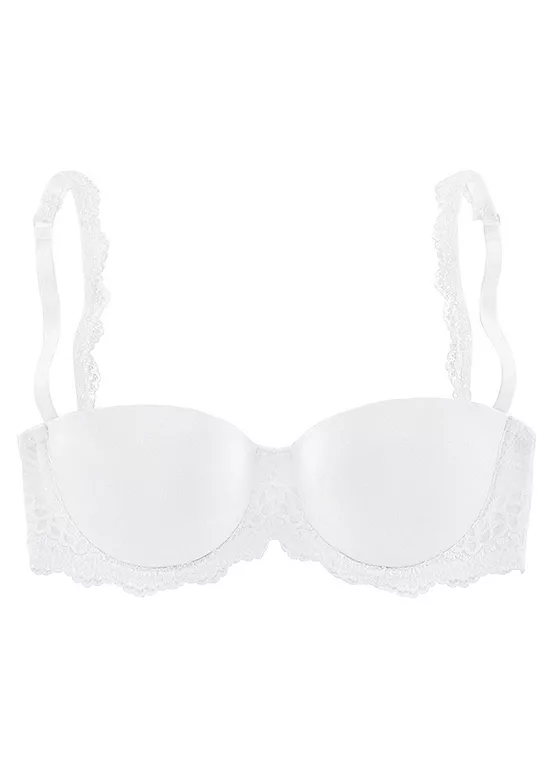 This feminine bra convinces with a delicate design. Featuring detachable lace straps that can be adjusted individually and offer three different ways of wearing – regular, crossed at the back or as a strapless bra. Due to the seamless simple cups, this piece is also particularly suitable for fitted clothing as nothing is visible. The centre front is covered with a floral jacquard lace, while the wings and back are made of a soft Microtouch material. A silicone band is incorporated on the inside to prevent the bra from slipping so that it offers good support even without the straps. The straps and the back closure can be individually adjusted for a high level of comfort. Detachable straps. Seamless preformed cups with integrated underwire. Individually adjustable straps and back closure.