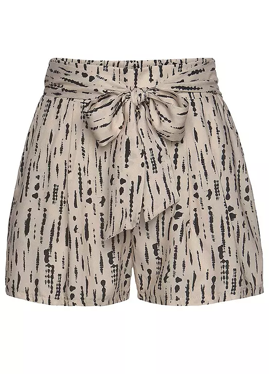 Trendy shorts with a high waistband, sewn-on tie belt with pockets on the sides. They provide a relaxed fit and are perfect for summer days thanks to the soft material. Slip waistband. Attached tie belt.