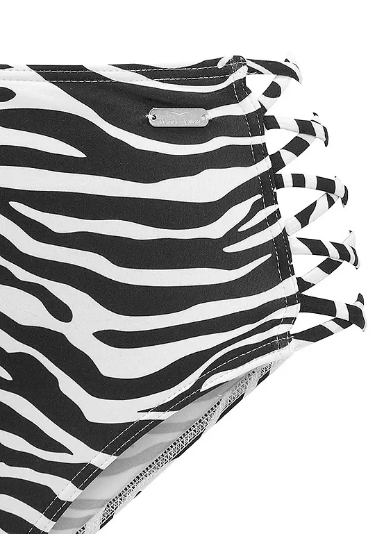 Fashionable high-waist bikini bottoms from Venice Beach. Trendy animal print. Crossed straps on the sides. Soft microfiber. Animal print. Machine washable. Outer: 85% Polyamide, 15% Elastane Lining: 100% Polyester.