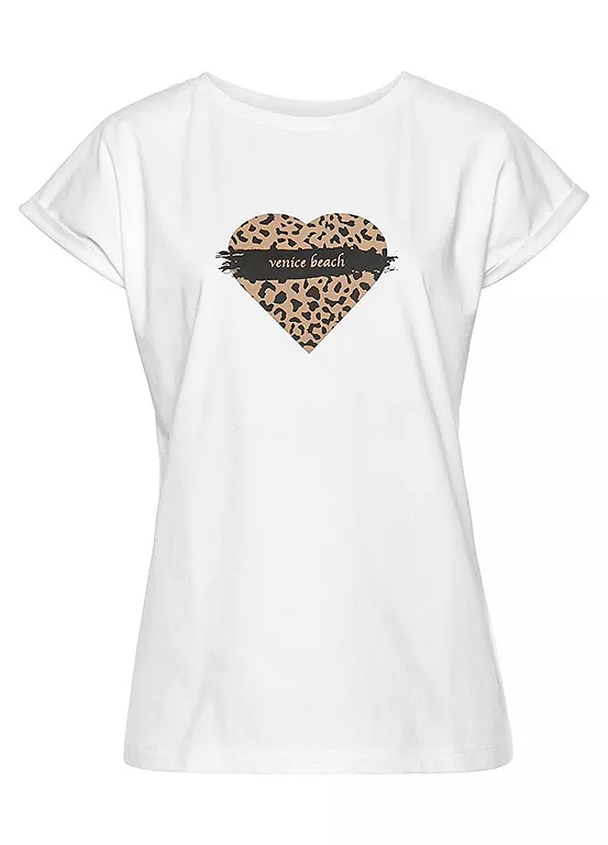 A comfortable jersey t-shirt by Venice Beach with a heart print on the front. Ideal for casual wear, it features a crew neck and short, turned-up sleeves.