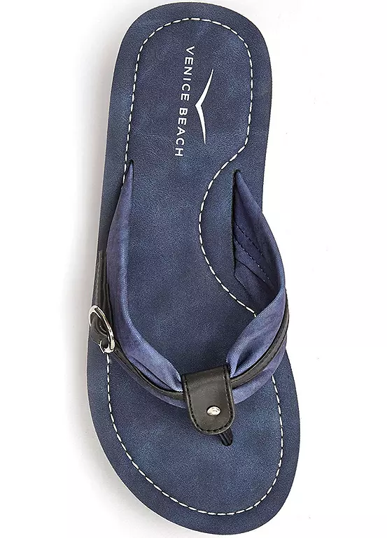Summery flip-flops with buckle strap detail in faux leather and textile. Finished with a light synthetic sole, and soft flexible fabric. Upper: Faux leather and textile. Sole: Synthetic. Vegan – free of animal components.