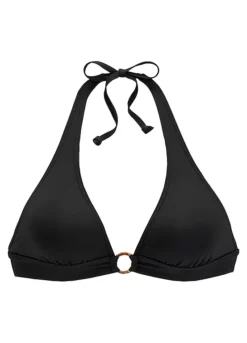 Underwired bikini top designed with a tropical print and plain details. Printed – each piece is unique. Removable soft cups.