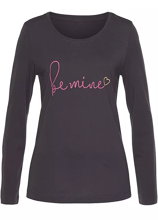 Pyjamas by Vivance Dreams with a sweet heart print, comprising a long sleeve pyjama top with a round neckline and matching bottoms with an all-over print. In a comfortable viscose and cotton blend. Elasticated cuffs on the leg hems.