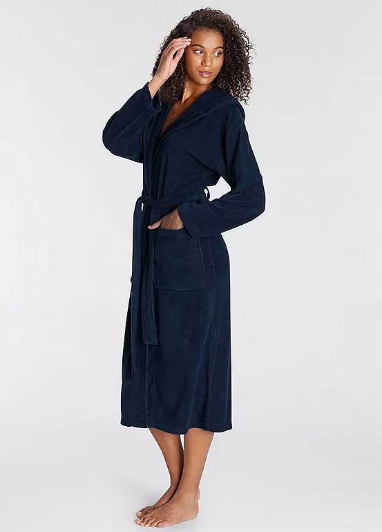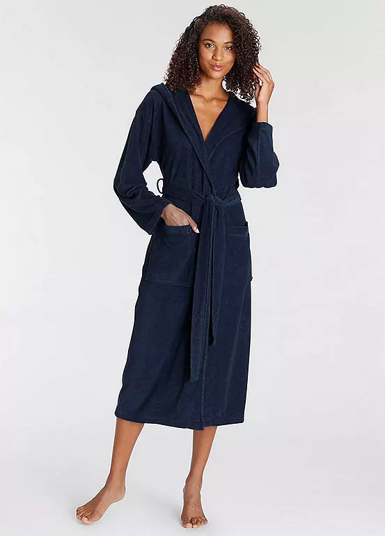 This cosy bathrobe is made from a soft cotton blend that feels great against the skin. It’s hooded and features a detachable tie belt, as well as logo embroidery on the patch pocket. Hooded and detachable tie belt at waist. With logo embroidery on the patch pocket.
