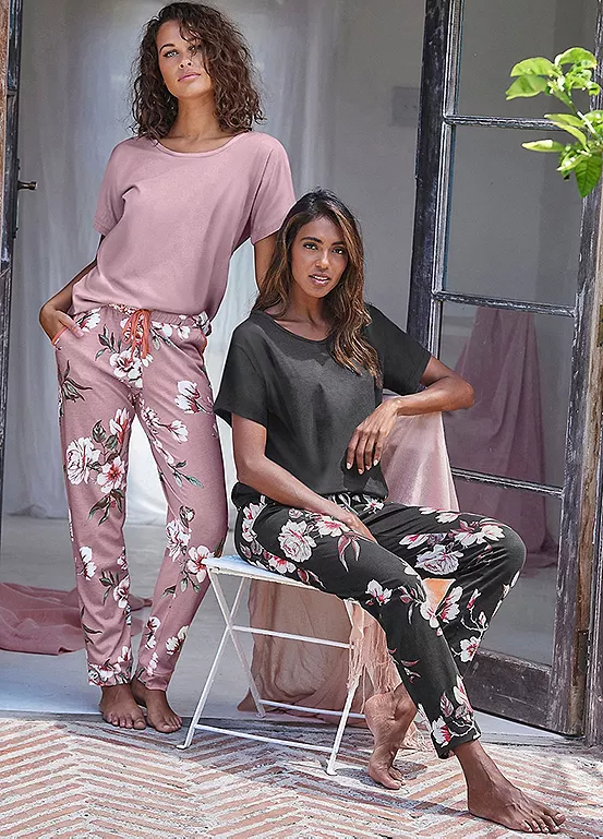 These pyjamas come in a practical 2-pack. In a floral all-over pattern with short sleeves and a classic round neckline. Plus a stretch drawstring waistband and side pockets.