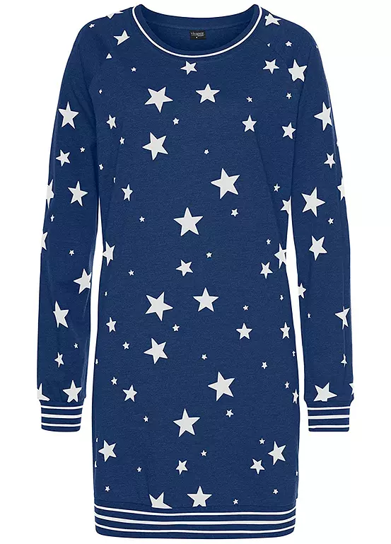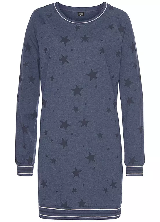 This nightgown has a classic round neckline and long sleeves. The ribbed cuffs on the neck, sleeve and hem ensure a perfect fit and more comfort. Soft cotton quality.