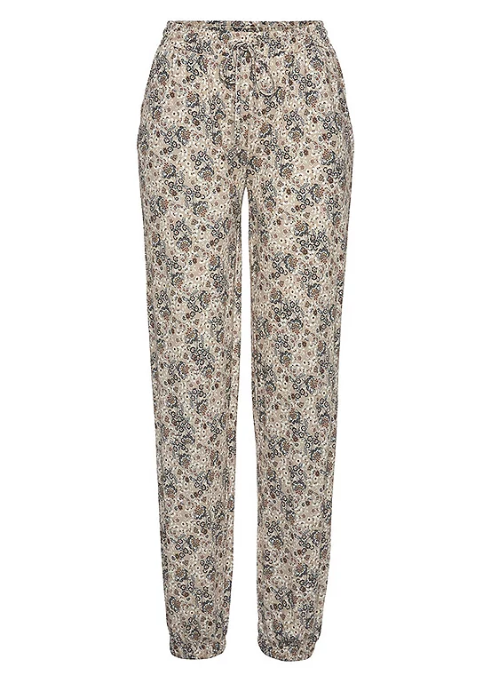 Trendy jersey pants in a fashionable all-over pattern that creates an eye-catching look. Featuring an elastic drawstring waistband, side pockets and an elastic band at the ankles. Made from soft viscose.