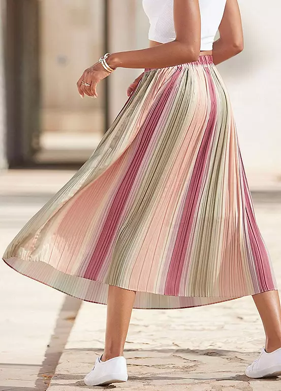 Pleated midi skirt with a multi-coloured stripe pattern, an elasticated waist and a straight hem. Straight hem. Soft flowing fabric.