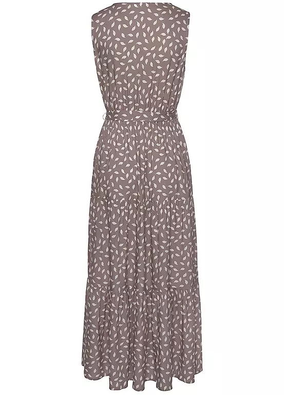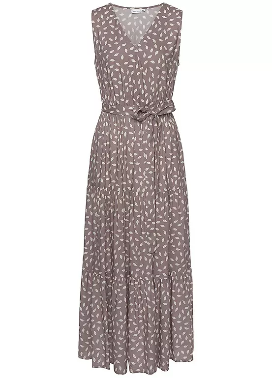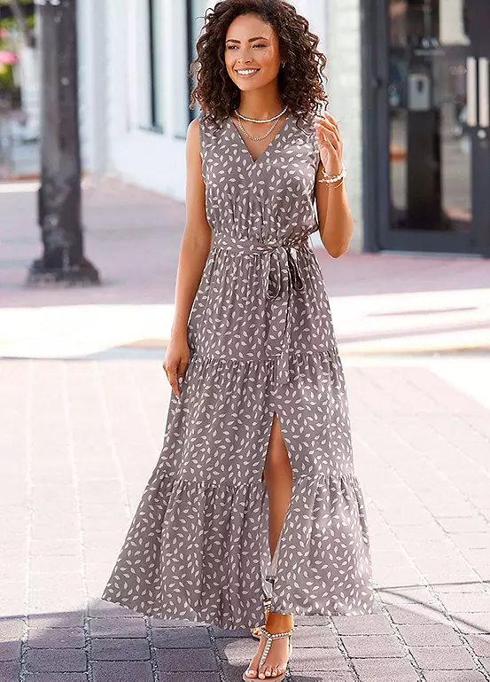 A printed sleeveless maxi dress by Vivance in comfortable woven fabric featuring a tiered skirt part with a hem slit and an elasticated waist.