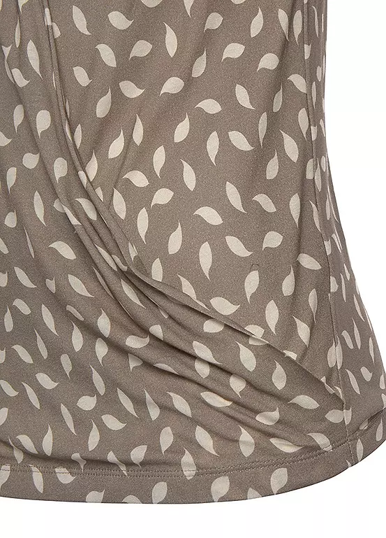Charming vest top with an all-over print by Vivance. With a deep V-neckline in a cache-coeur style. Gathered details at hem and shoulder. Deep V-neckline. Overlapping front part fixed at the neckline.