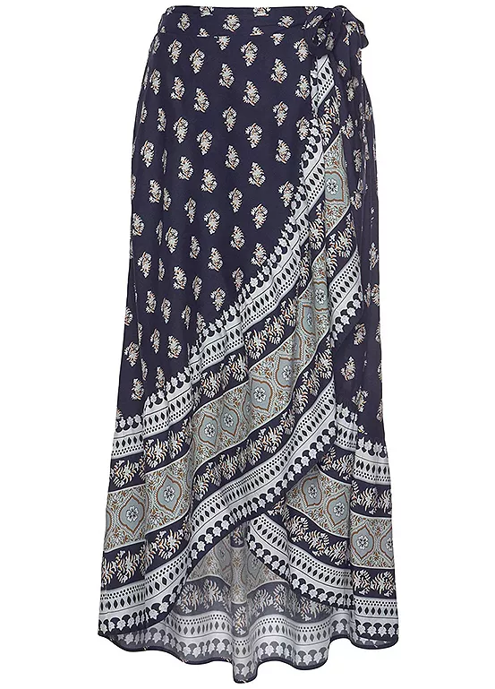 A wrap maxi skirt by Vivance in soft flowing viscose featuring playful flounce at the hem and a tie at the waist. The waistband is smooth at the front and elasticated at the back.