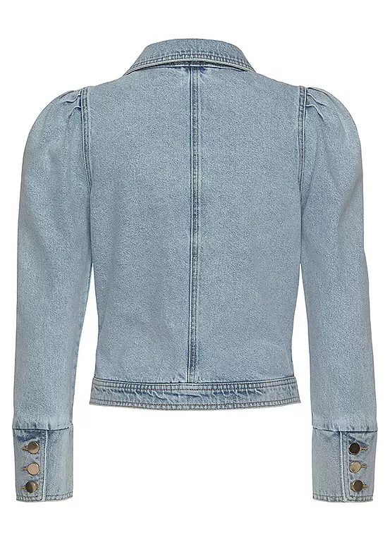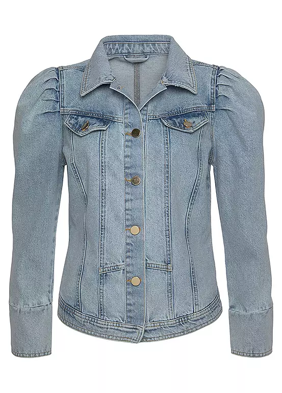 This denim jacket by Vivance is something very special. It consists of soft denim quality and an on-trend washed look. Featuring patch pockets on the chest, a button placket and long sleeves with button cuffs. Complete with puffed sleeves that add extravagance.