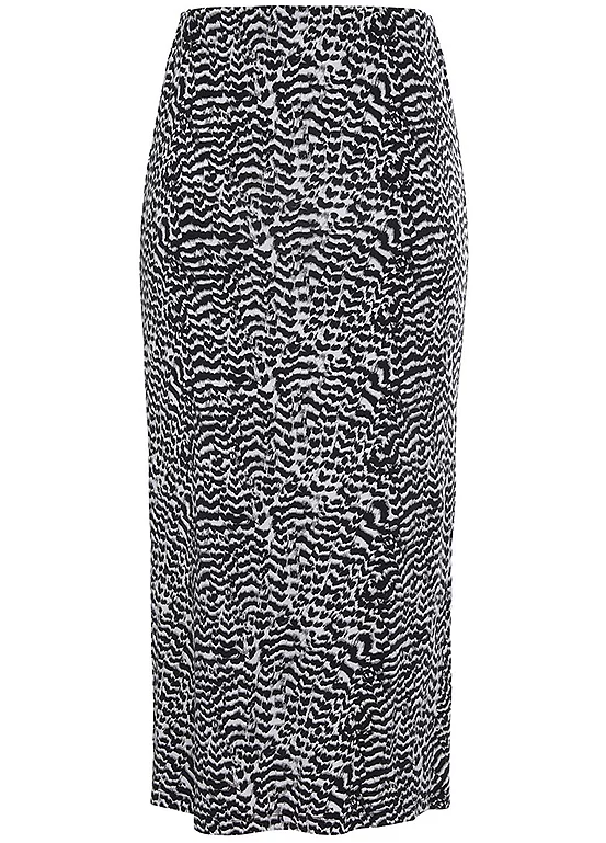 A real ’it-piece’ for trendy styles, this midi skirt by Vivance features an eye-catching print, plus side ruffles and a high hem slit, which subtly reveals the leg. The jersey skirt is not only praiseworthy from a visual point of view. The wearability of the inner elasticated waistband and soft jersey fabric also deserves recognition. High hem slit. Elasticated waistband. Machine washable. 95% Viscose, 5% Elastane.