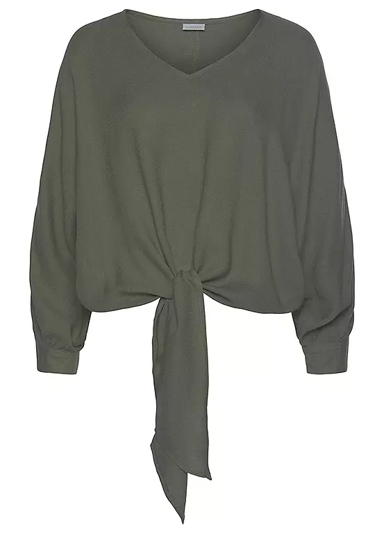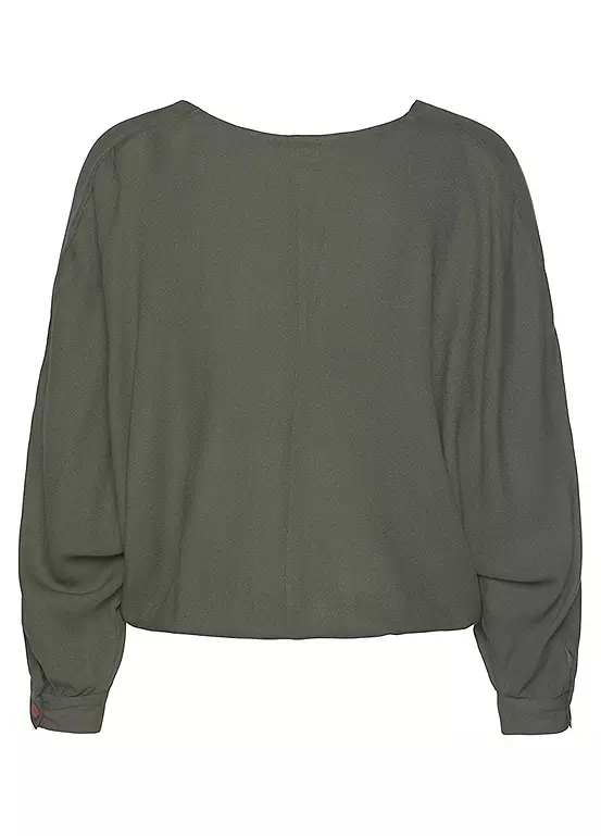 This blouse combines a casual style with playful details. It is equipped with a V-neckline and cropped-length sleeves. You can wear the end of the sleeves open or closed thanks to the button and sleeve slit. You also have the opportunity to express your style at the front. This is where a tie is set on the hem, which can be shaped into a stylish knot. A special highlight is the soft viscose material that feels wonderfully comfortable on your skin when worn.
