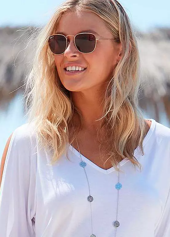 Fashionable V-neck top in a versatile design with a deep neckline and sophisticated cut-outs at the sleeves. A dividing seam runs from top to bottom on the back.