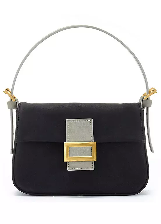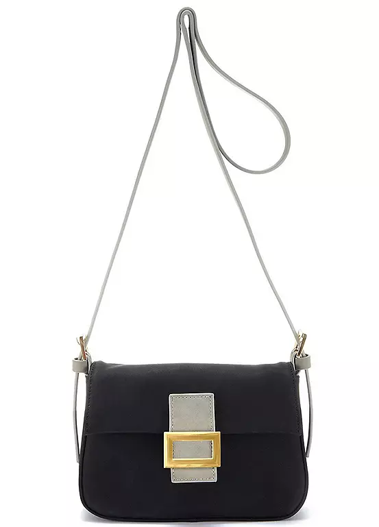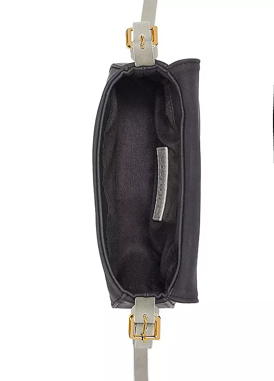Adorable mini handbag made of vegan faux leather. Finished with contrasting metallic details. Dimensions approx. 13H x 19W x 5D cm.